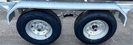 Tandem axle 10" disc brakes, stops 7000lbs. Plastic bunk wrap |